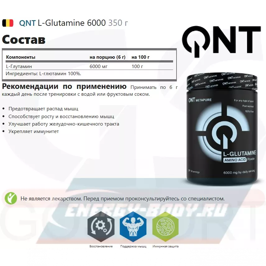 L-глютамин является одной из 20 встречающихся в природе аминокислот (так называемые строительные блоки белков), и он является наиболее распространенным в организме человека. Это чрезвычайно важно для хорошей функциональности организма, так как он играет важную роль в ряде различных метаболических реакций. Мышцы, которые подверглись очень интенсивным или длительным усилиям, таким как тяжелые тренировки с отягощениями или длительные спортивные упражнения на выносливость, и вступили в так называемую катаболическую фазу (период, когда мышцы разрушаются), должны восстанавливать поврежденные волокна. На этом этапе восстановления крайне важно убедиться в наличии достаточного количества глютамина для обеспечения оптимальных результатов.