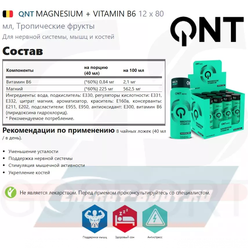 MAGNESIUM SHOT благодаря своим многочисленным благотворным эффектам идеально подходит для всех и, в частности, для всех активных людей. Магний способствует уменьшению усталости и усталости, способствует нормальному энергетическому метаболизму и нормальному функционированию нервной системы, способствует балансу электролитов, нормальной функции мышц, синтезу белка и поддержанию нормальных костей. Добавление витамина В6 способствует нормальному метаболизму белков и гликогена и регуляции гормональной активности.
