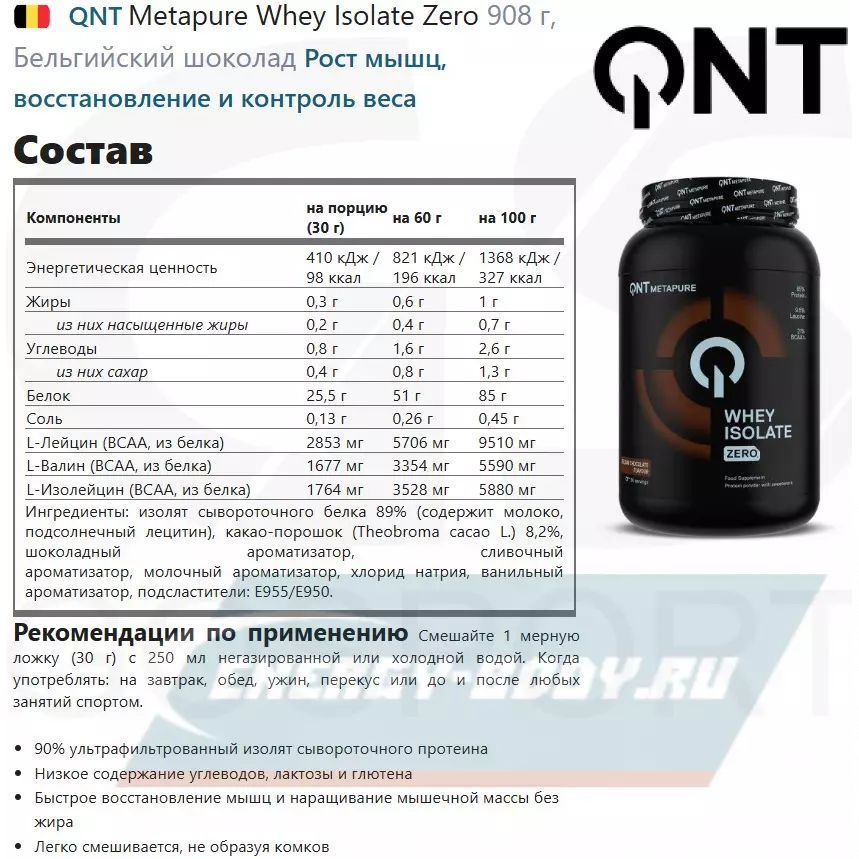 QNT Metapure Whey Isolate Zero 908 г, Бельгийский шоколад — Рост мышц, восстановление и контроль веса
