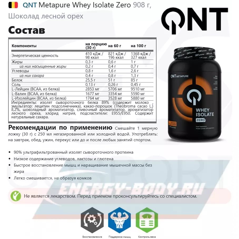 Metapure Zero Carb содержит исключительно изолят сывороточного белка. Этот тип сыворотки содержит белок, который чище и намного лучше, чем традиционный белок молочной сыворотки. Его биологическая ценность выше, чем у концентрированной сыворотки, содержащей более 90% белка (сухого вещества). Кроме того, эта сыворотка почти не содержит лактозы и намного меньше жира и углеводов. Поэтому он идеально подходит для людей с непереносимостью лактозы, которые не смогли использовать традиционный сывороточный белок.