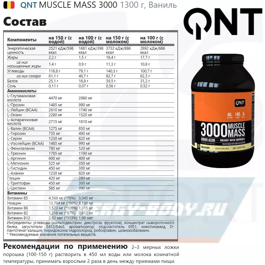 Когда простой еды не достаточно стимулировать набор мышечного веса, гейнер Weight Gain 3000 ваш надежный партнер. Используя все нужные ингредиенты, этот гейнер снабжает быстро-абсорбируемые сахара и комплексные углеводы для пополнения запасов печеночного гликогена. Произведённый из концентрата сывороточного протеина, он предотвращает мышечный катаболизм в конце тренировки. Также, добавленные витамины обеспечат ассимиляцию и баланс всех активных ингредиентов.