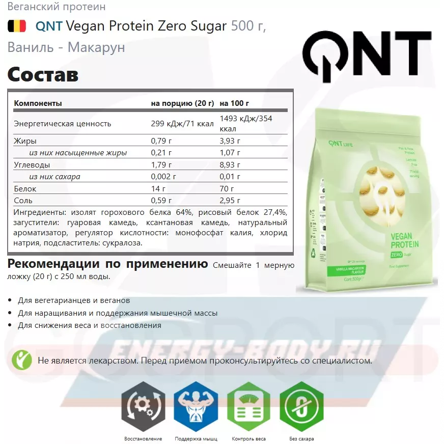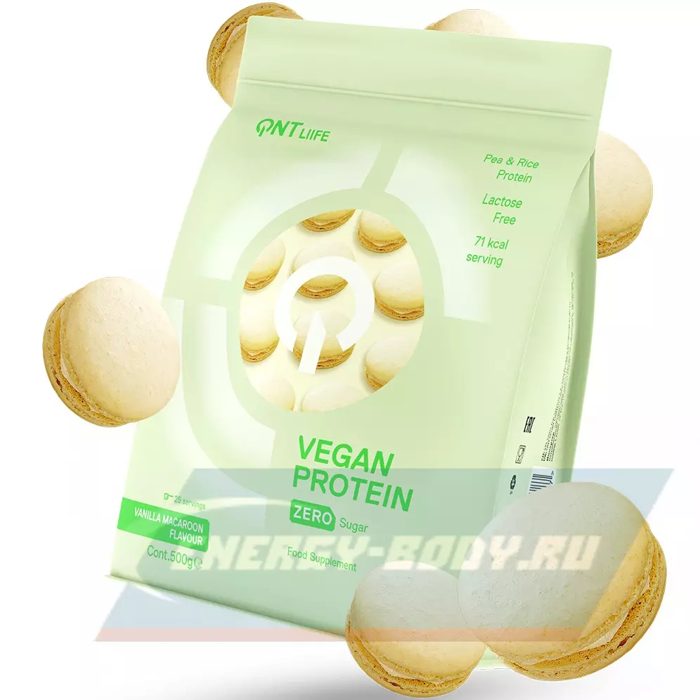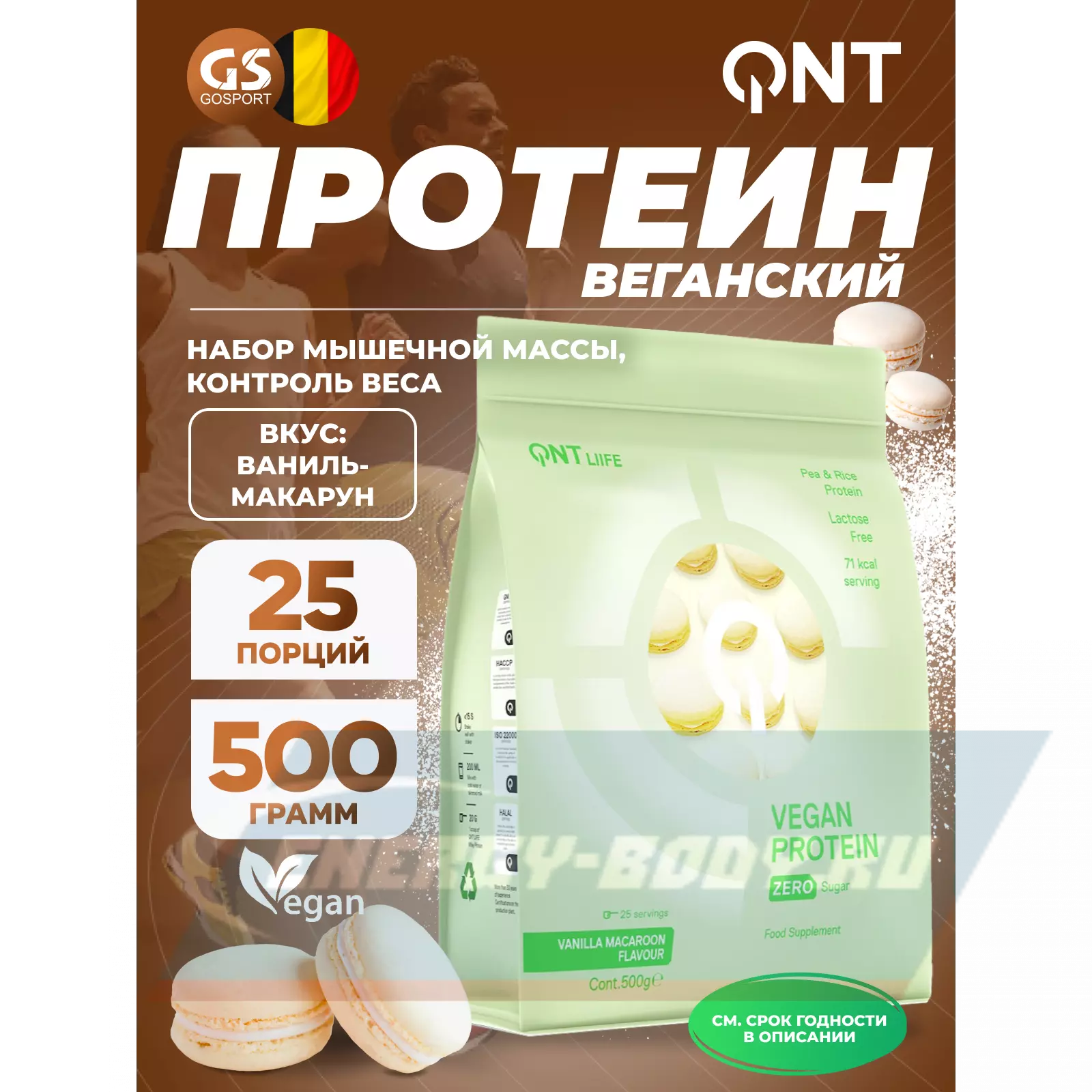 QNT Vegan Protein Zero Sugar 500 г, Ваниль - Макарун — Набор мышечной массы и контроль веса