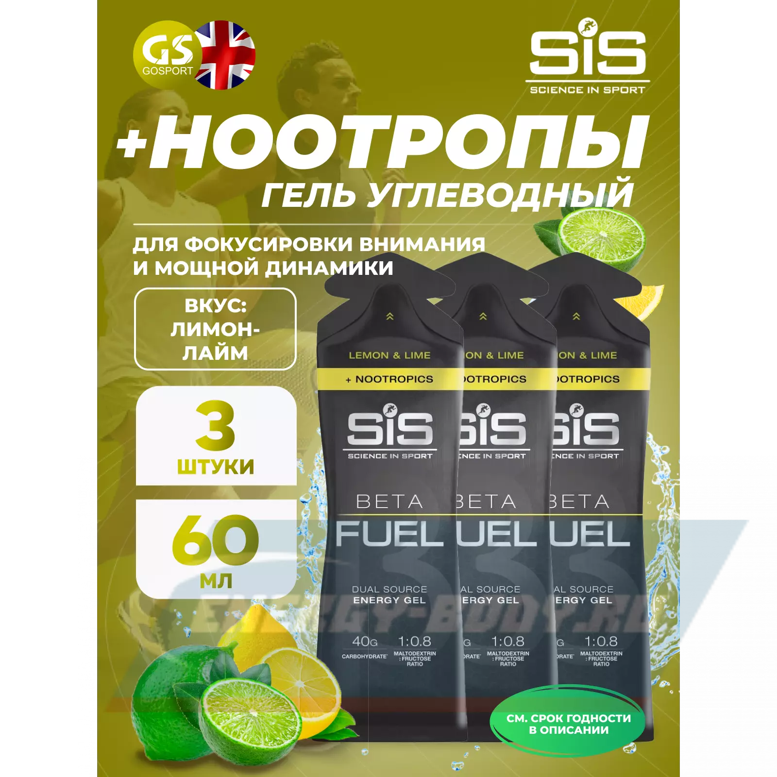 SCIENCE IN SPORT (SiS) BETA FUEL + Nootropics 3 x 60 мл, Лимон - Лайм — Выносливость и улучшение концентрации