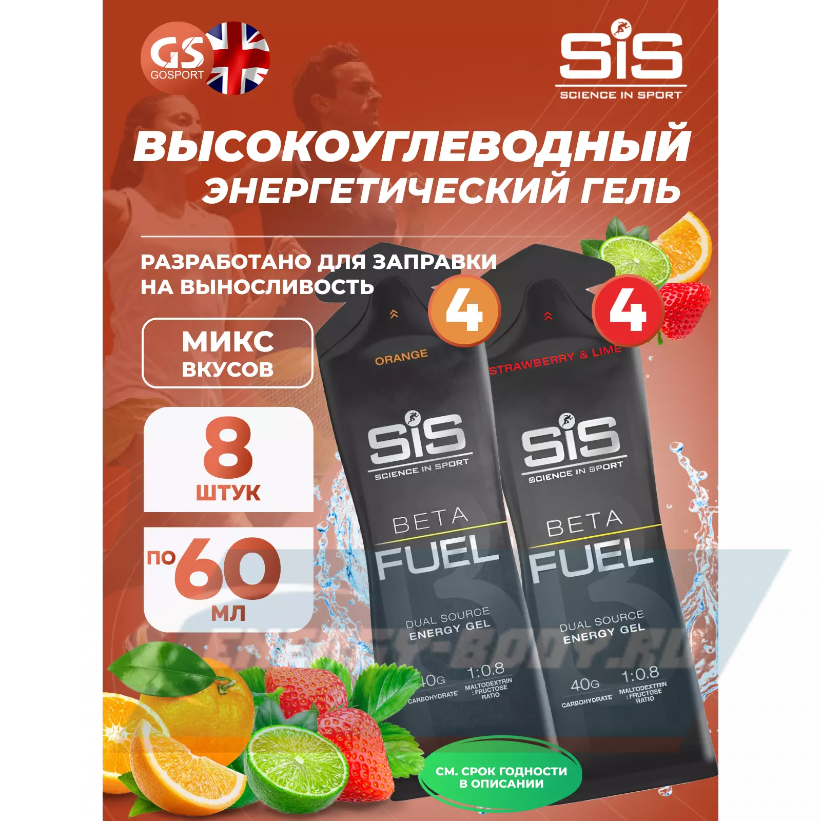 Спортивные диетологи рекомендуют принимать гель с фруктозой и мальтодекстрином, ведь он позволяет использовать организму на 17% углеводов больше чем в формуле 2:1, а следовательно - получать больше энергии. Используйте гели SiS и с другими продуктами линейки Beta Fuel.