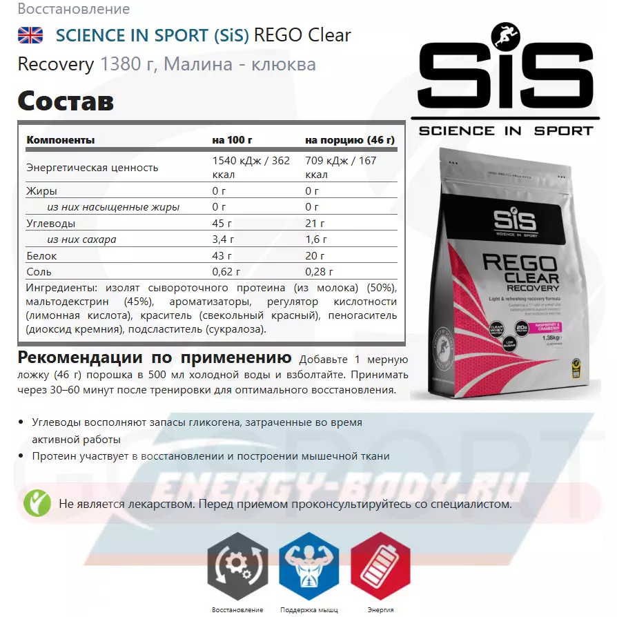 Состав SCIENCE IN SPORT (SiS) REGO Clear Recovery