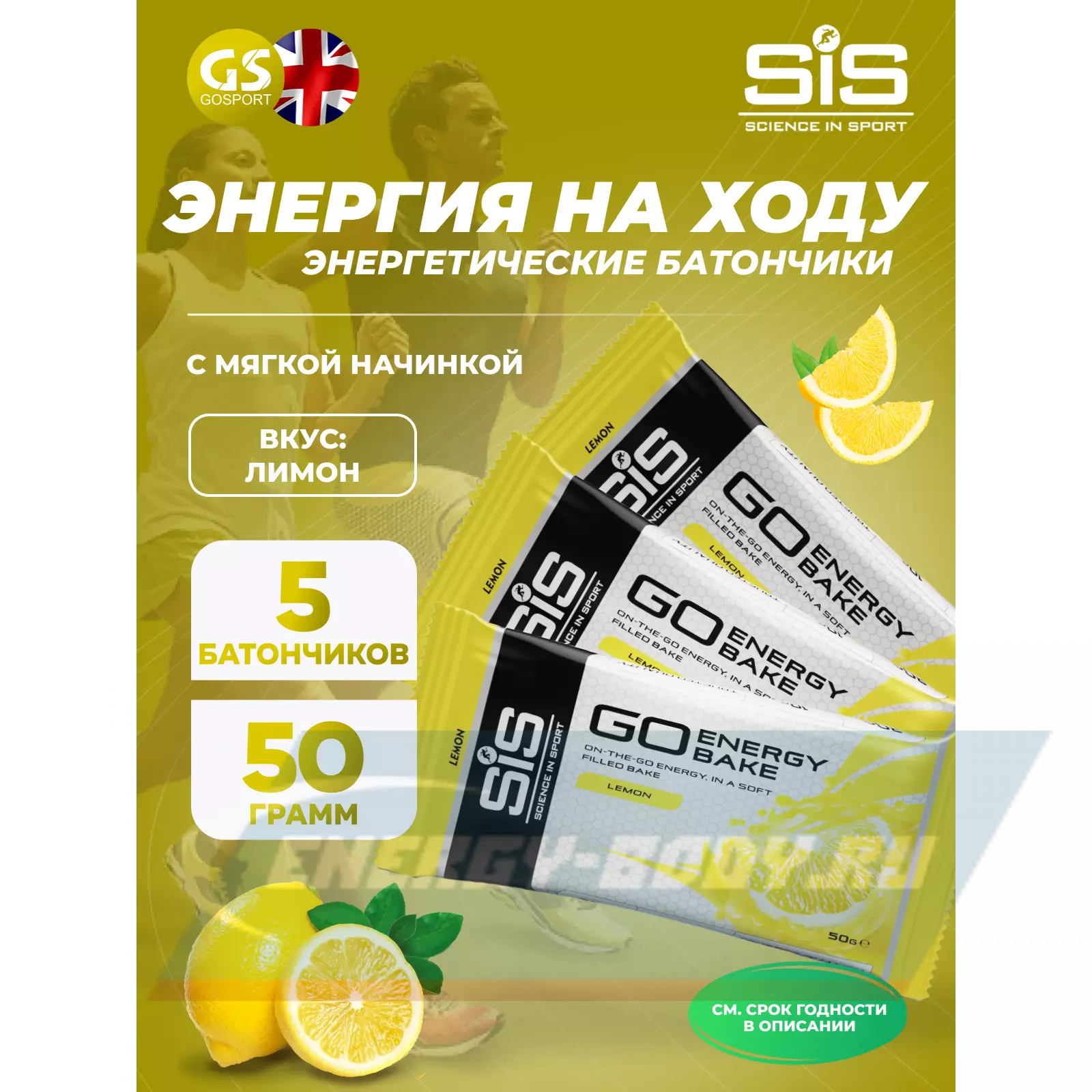 SCIENCE IN SPORT (SiS) GO Energy Bake 5 x 50 г, Лимон — Поддержка уровня энергии