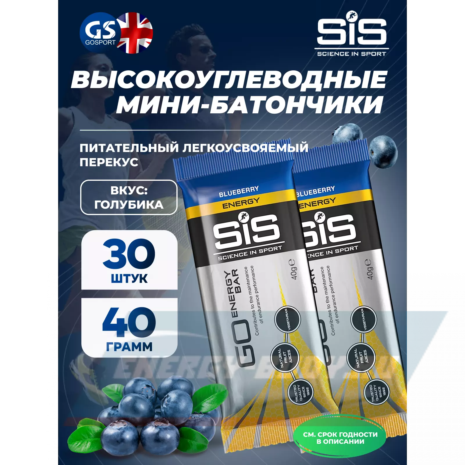 SCIENCE IN SPORT (SiS) GO Energy Mini Bar 30 x 40 г, Голубика — Питательный легкоусвояемый перекус