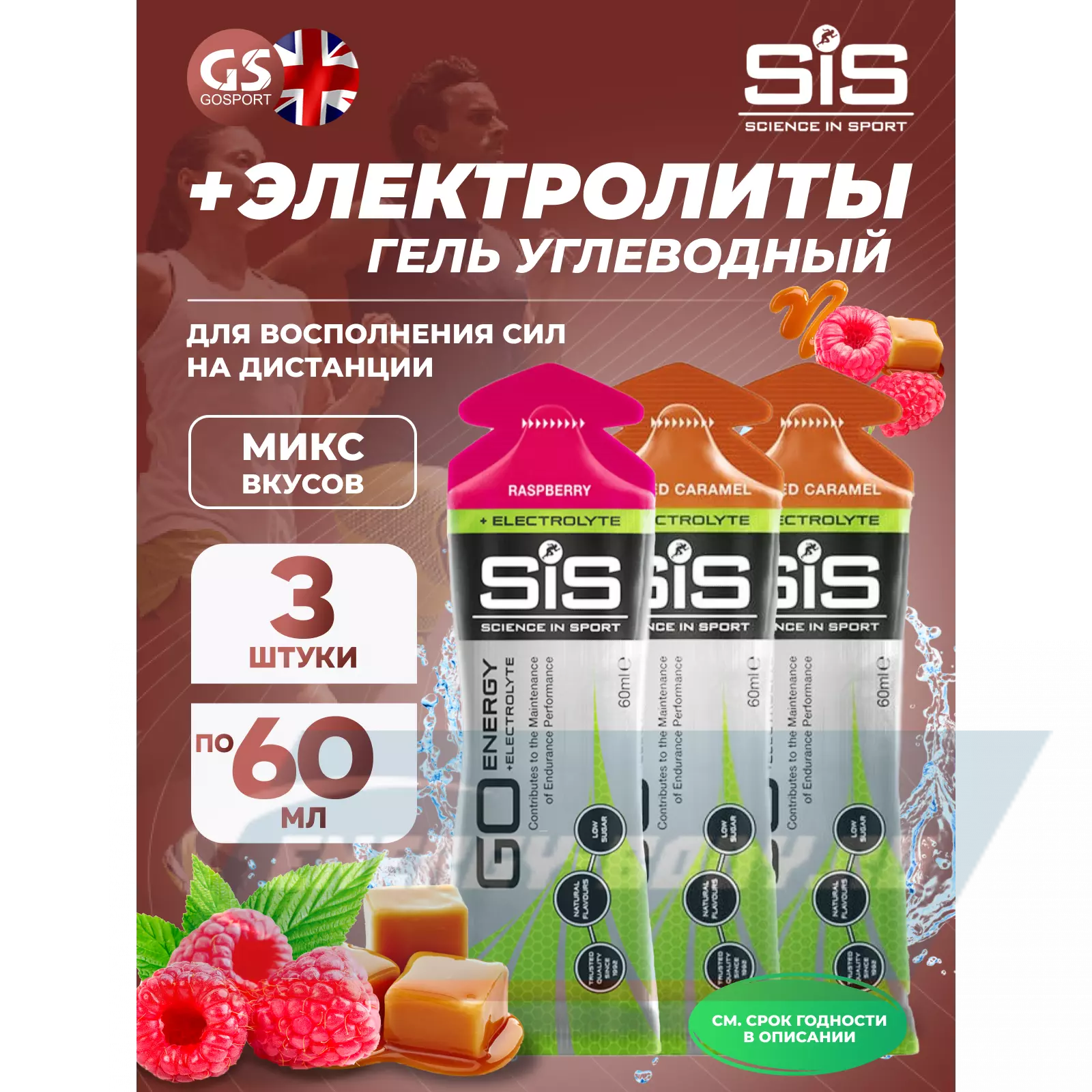 SCIENCE IN SPORT (SiS) Go Energy + Electrolyte Gels 3 x 60 мл, №1 Малина, Солёная Карамель