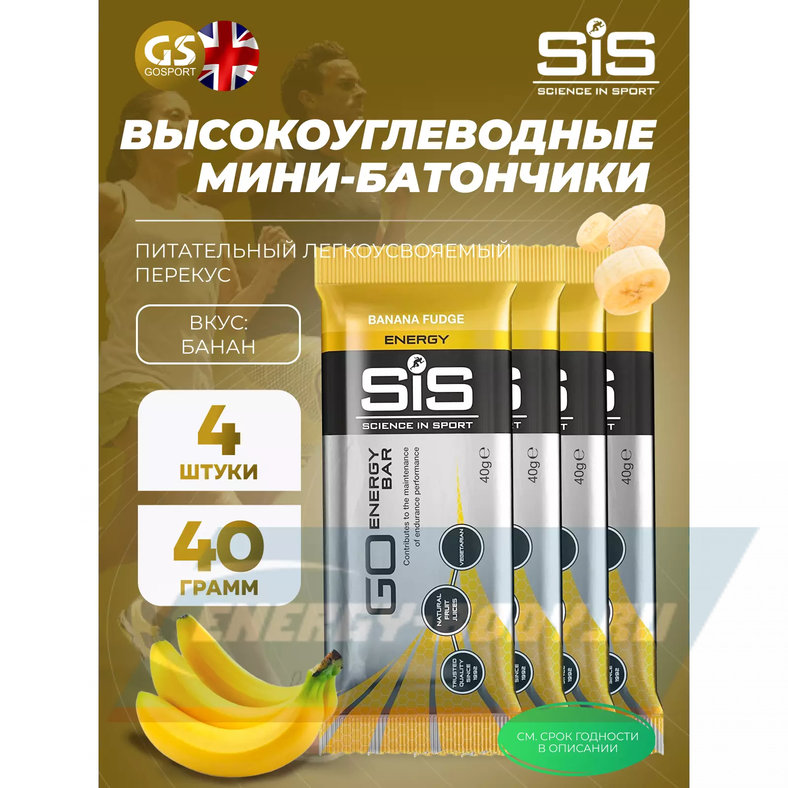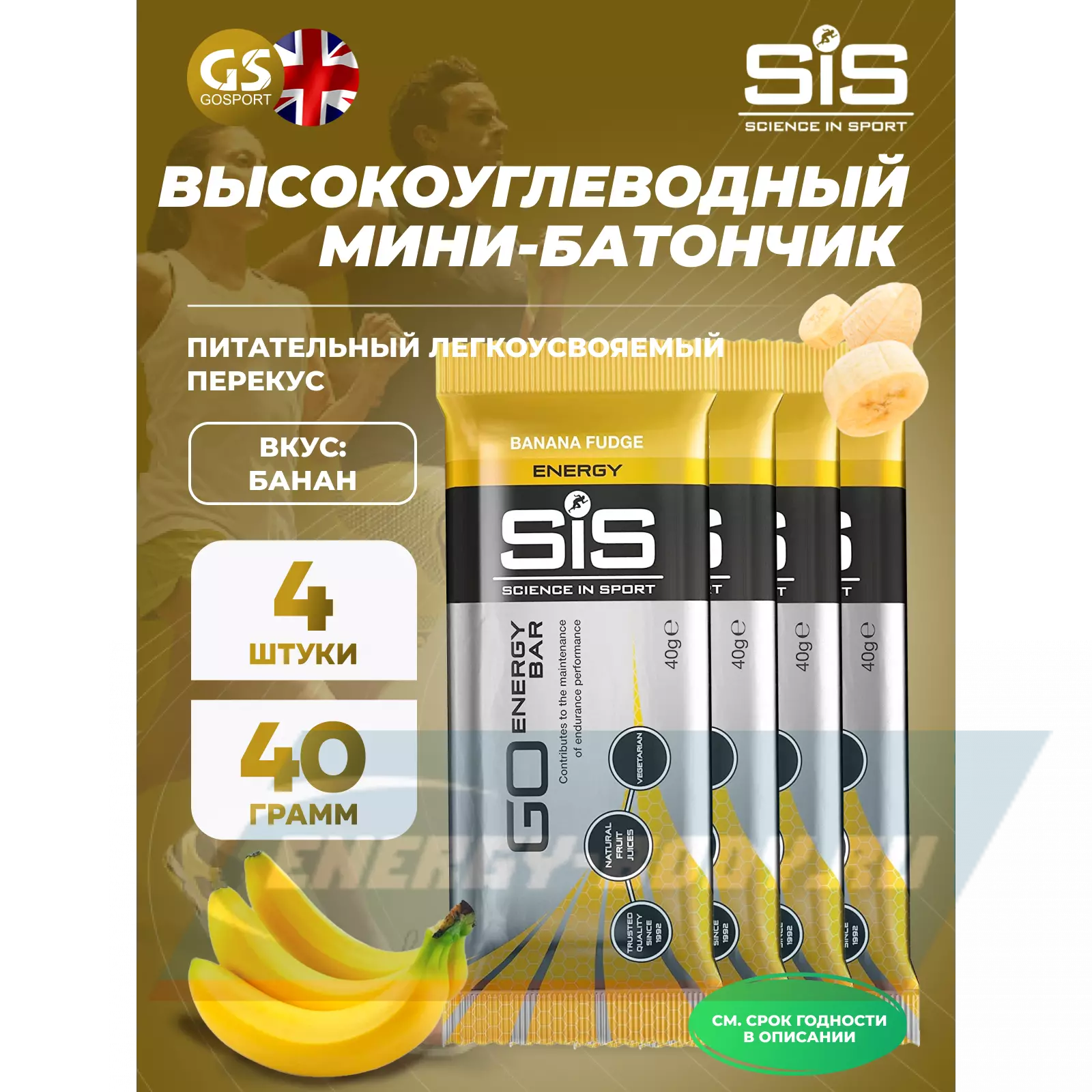 SCIENCE IN SPORT (SiS) GO Energy Bar 4 x 40 г, Банан — Питательный легкоусвояемый перекус