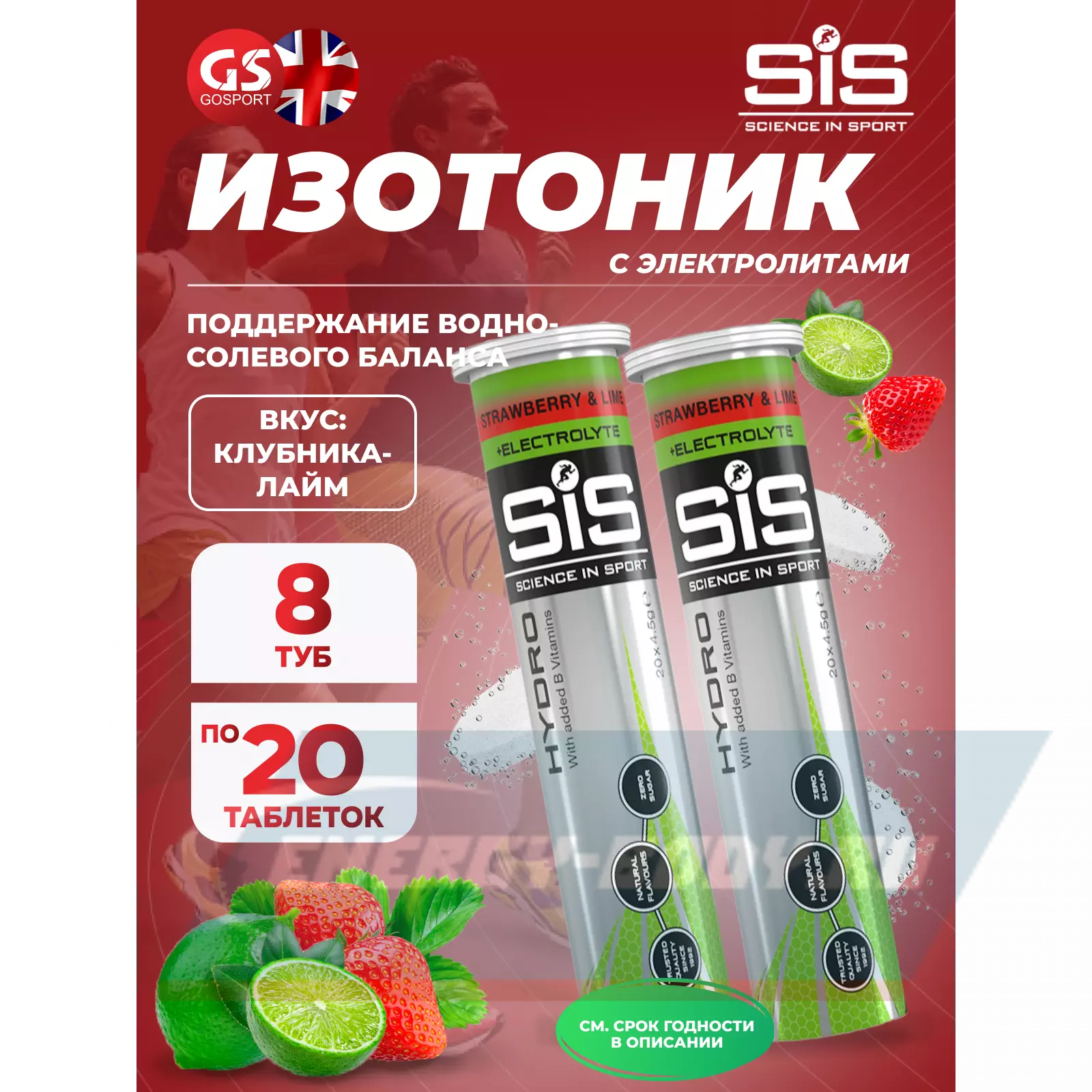 SCIENCE IN SPORT (SiS) GO Hydro Tablet 20s 8 x 20 таблеток, Клубника - Лайм — Поддержание водно-солевого баланса