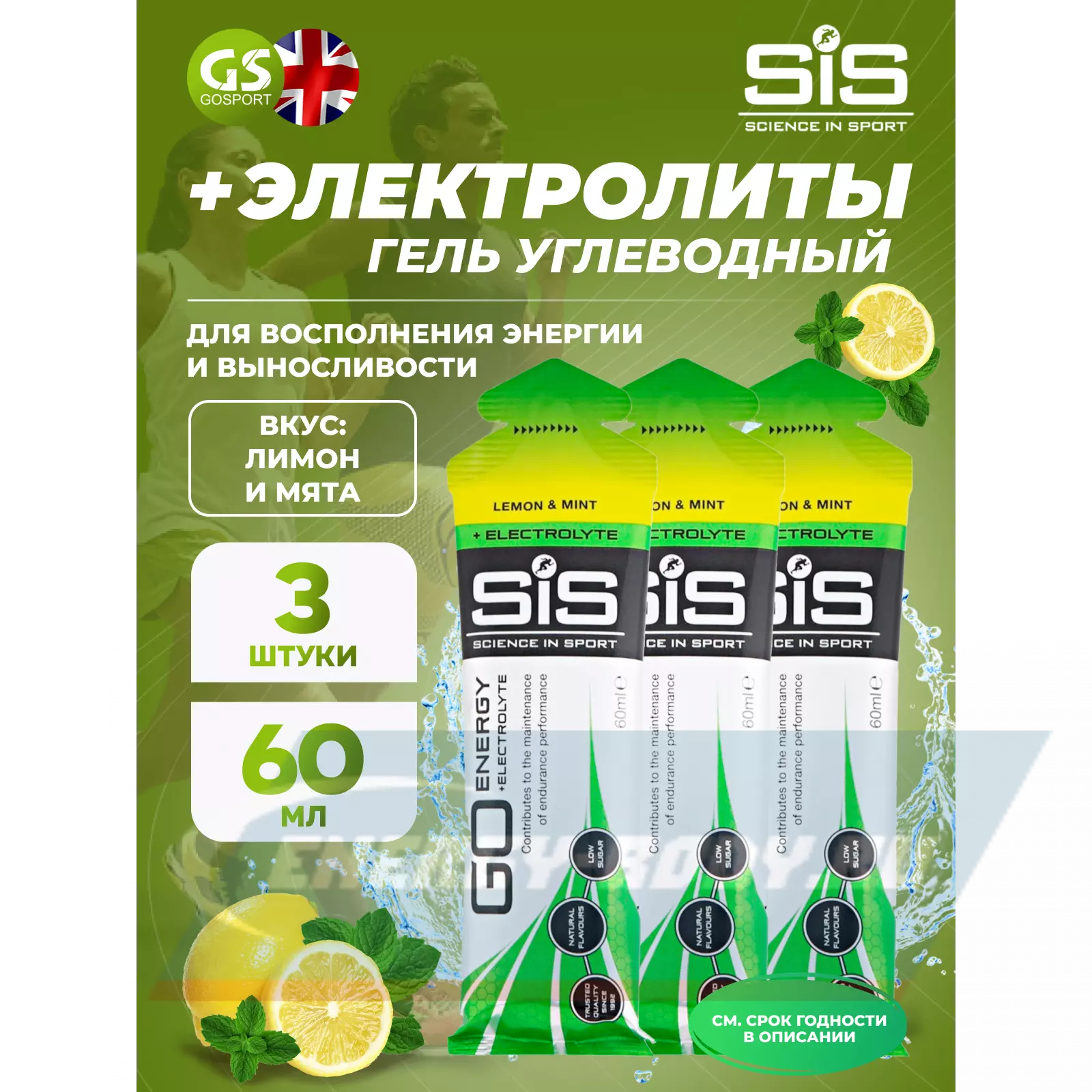 SCIENCE IN SPORT (SiS) Go Energy + Electrolyte Gels 3 x 60 мл + электролиты, Лимон-Мята