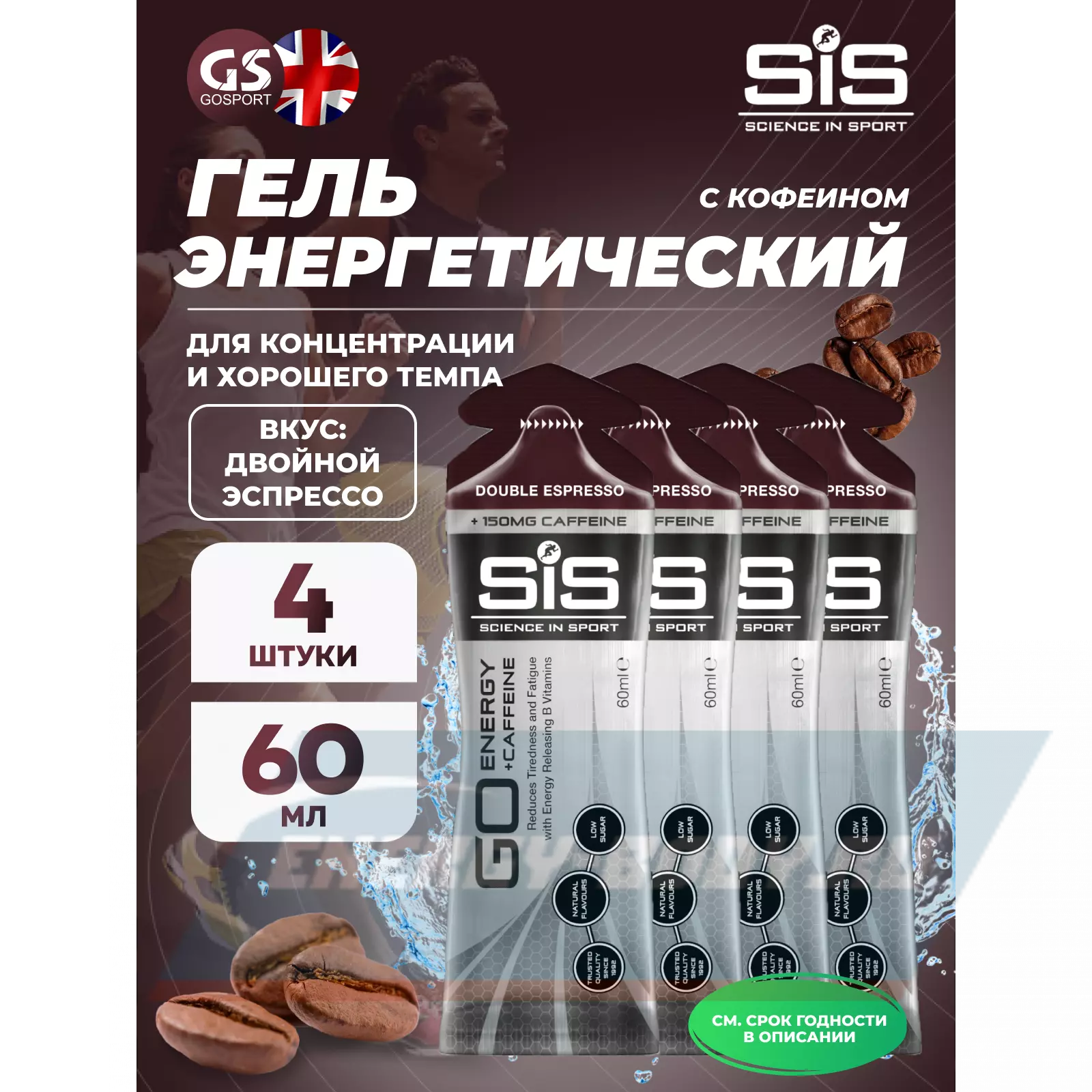 SCIENCE IN SPORT (SiS) GO Energy 150 mg Caffeine 4 x 60 мл, Двойной эспрессо — Быстрая энергия и концентрация