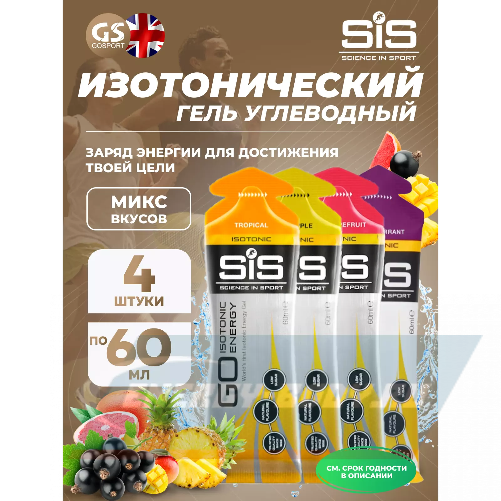GO Isotonic Energy Gels 4 x 60 мл, Микс №11