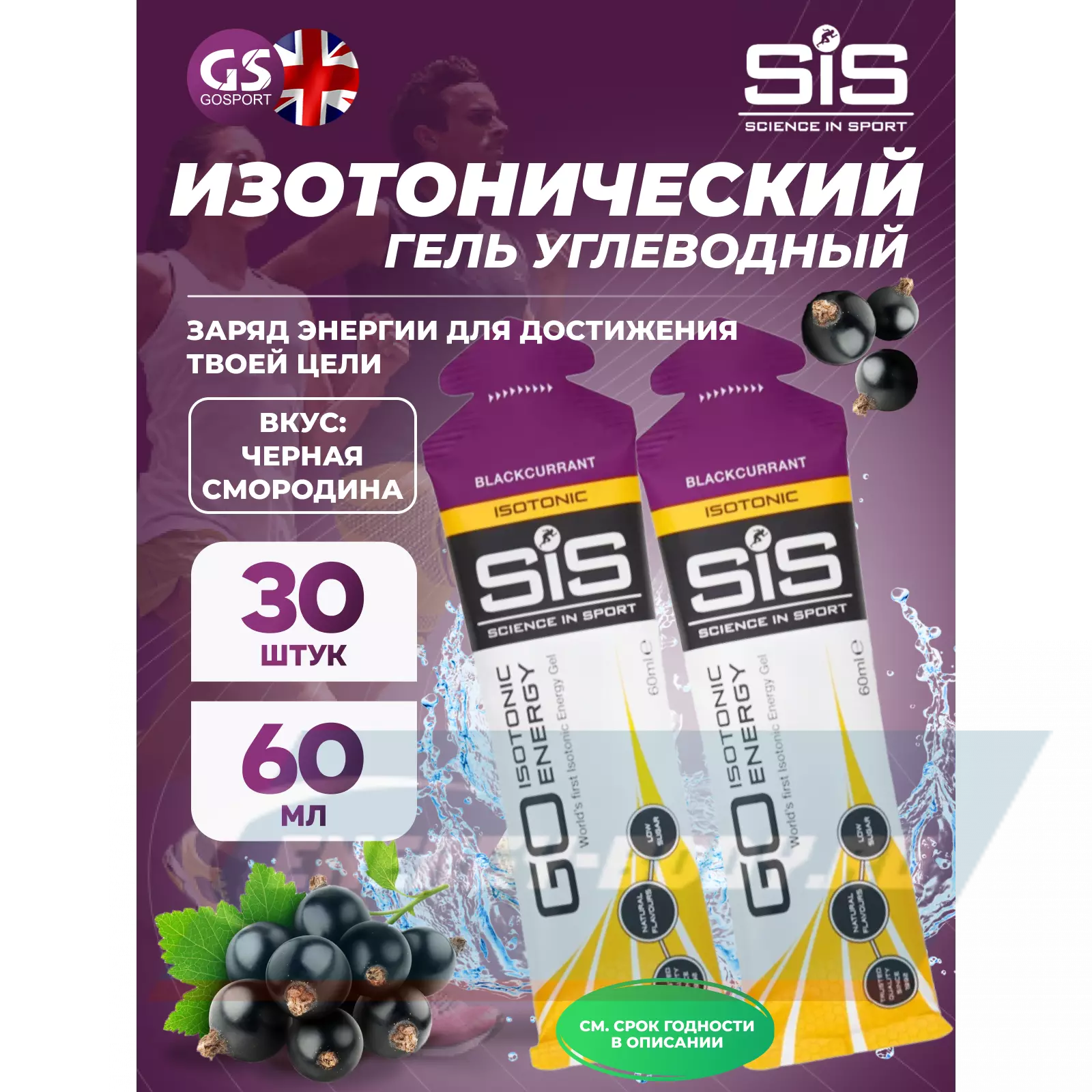 SCIENCE IN SPORT (SiS) GO Isotonic Energy Gels 30 x 60 мл, Черная смородина — Быстрое пополнение энергии