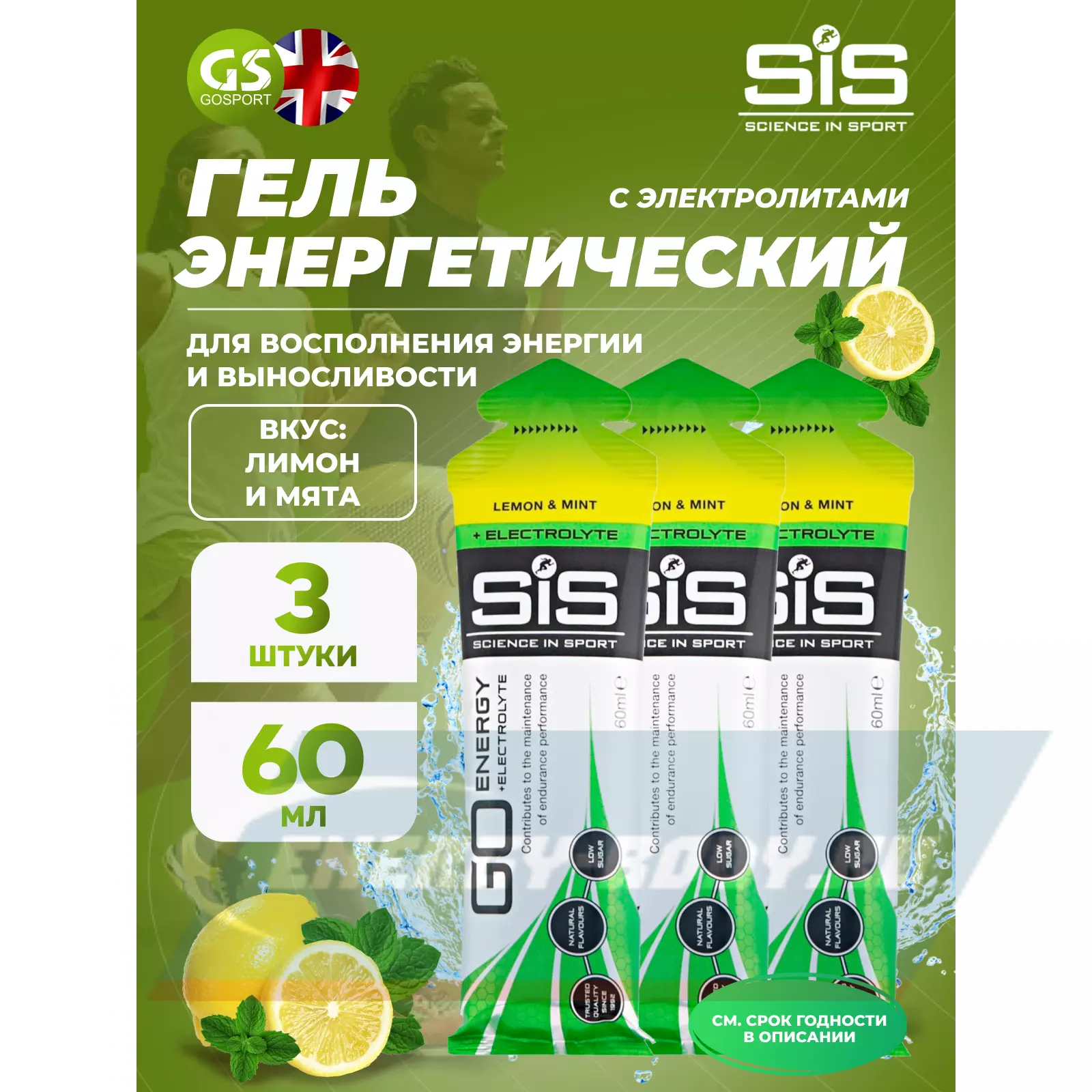 SCIENCE IN SPORT (SiS) Go Energy + Electrolyte Gels 3 x 60 мл + электролиты, Лимон-Мята