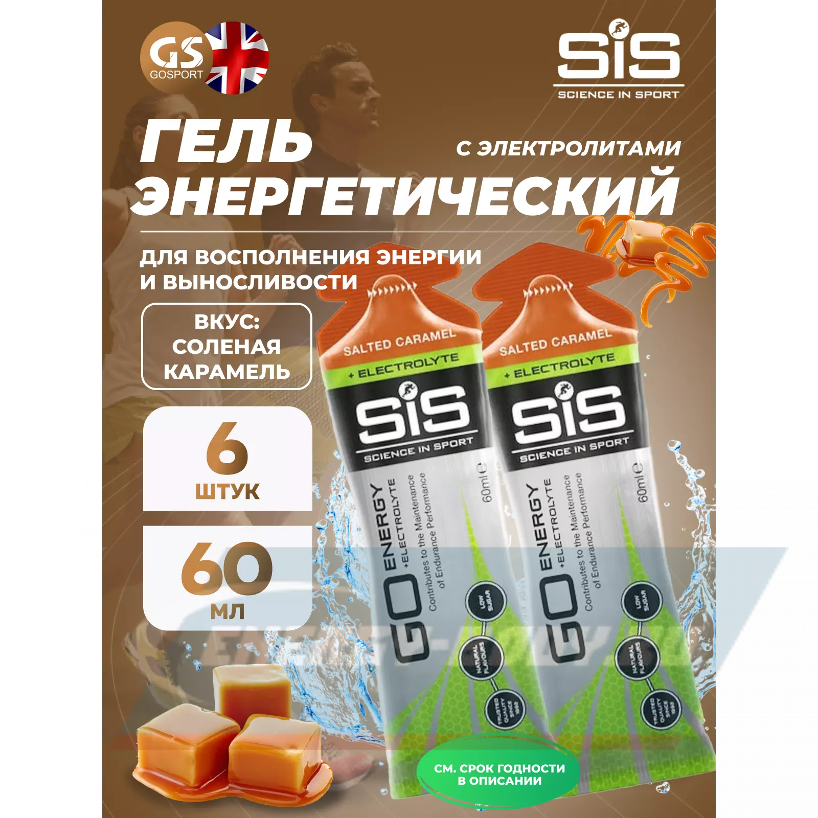 Go Energy + Electrolyte Gels 6 x 60 мл, Солёная карамель