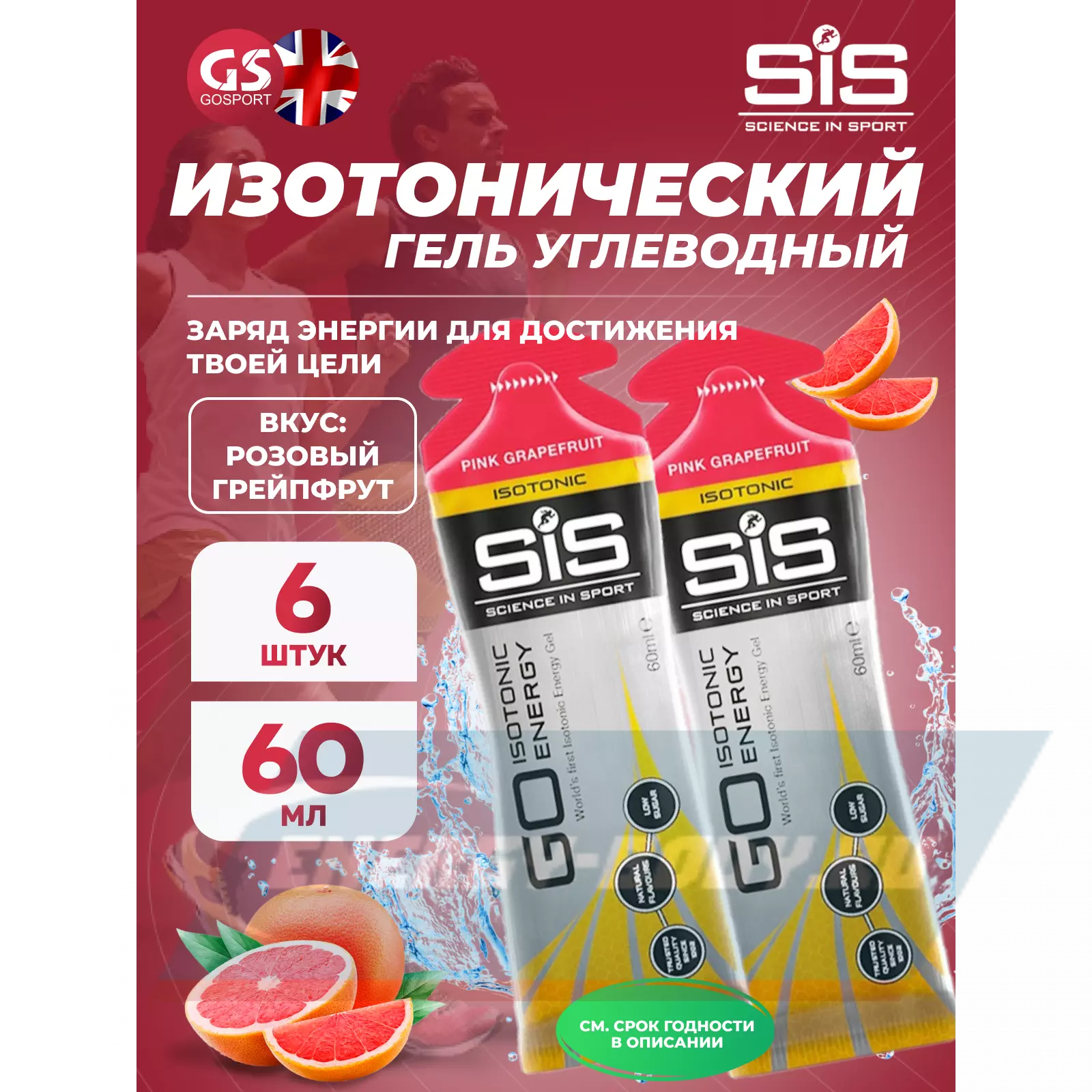 SCIENCE IN SPORT (SiS) GO Isotonic Energy Gels 6 x 60 мл, Розовый грейпфрут — Быстрое пополнение энергии