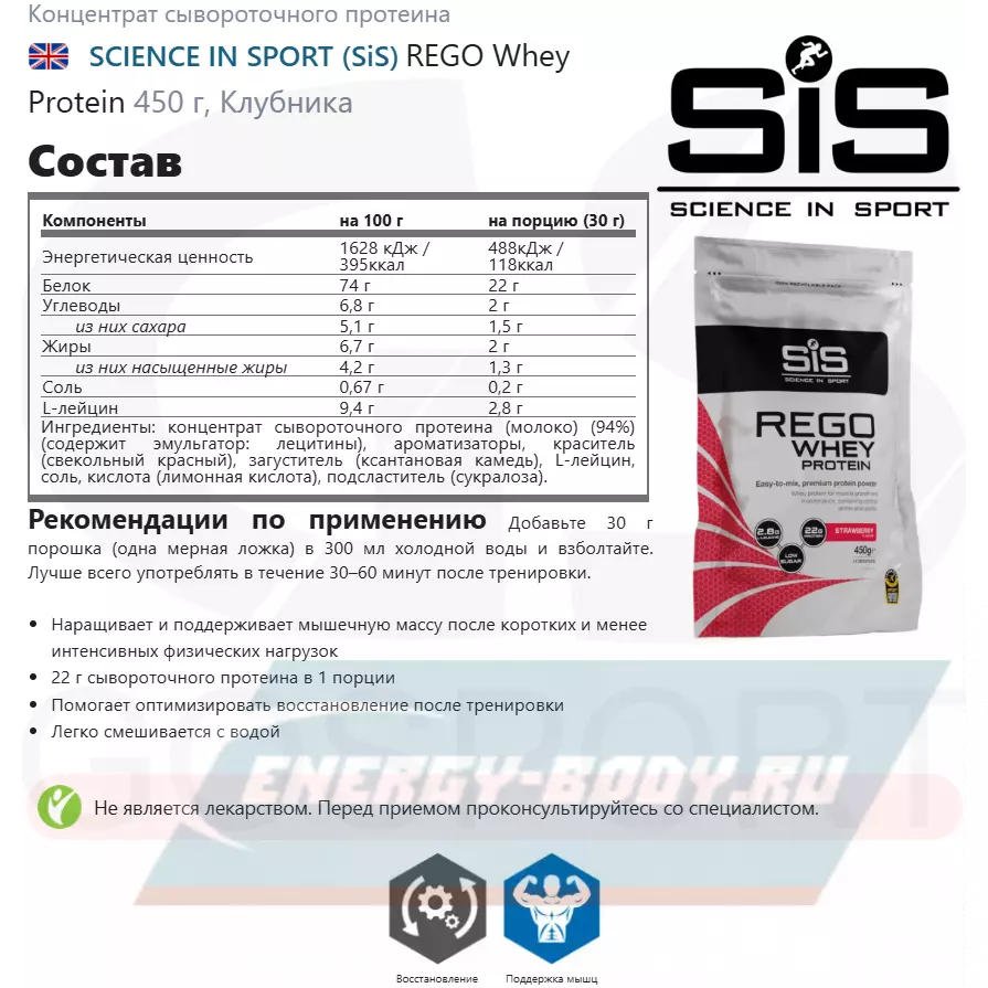 Состав SCIENCE IN SPORT (SiS) REGO Whey Protein