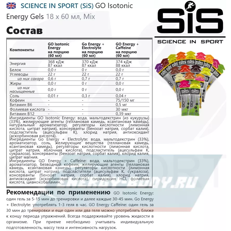 Состав SCIENCE IN SPORT (SiS) GO Isotonic Energy Gels