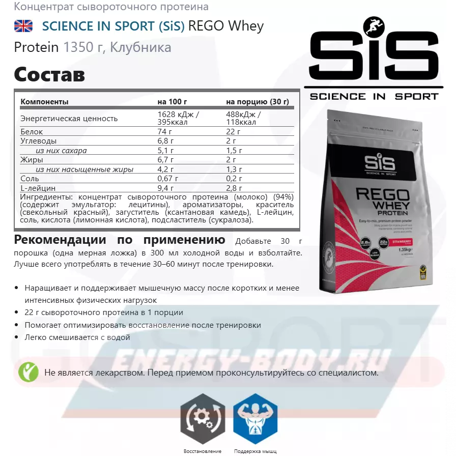 Состав SCIENCE IN SPORT (SiS) REGO Whey Protein