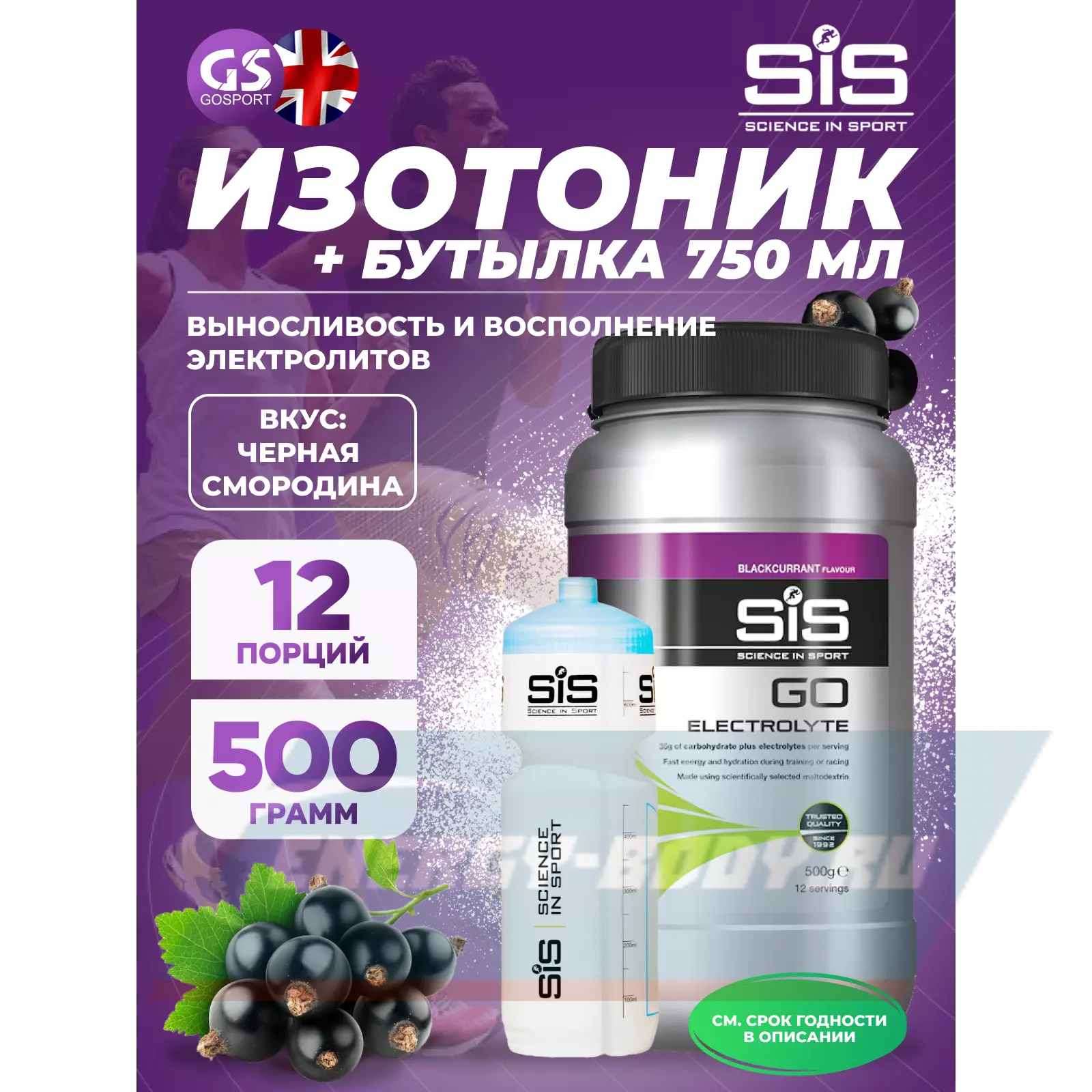 SCIENCE IN SPORT (SiS) GO Electrolyte + Бутылочка прозрачная 1 x 500 г, Черная смородина №5 — Выносливость и восполнение электролитов