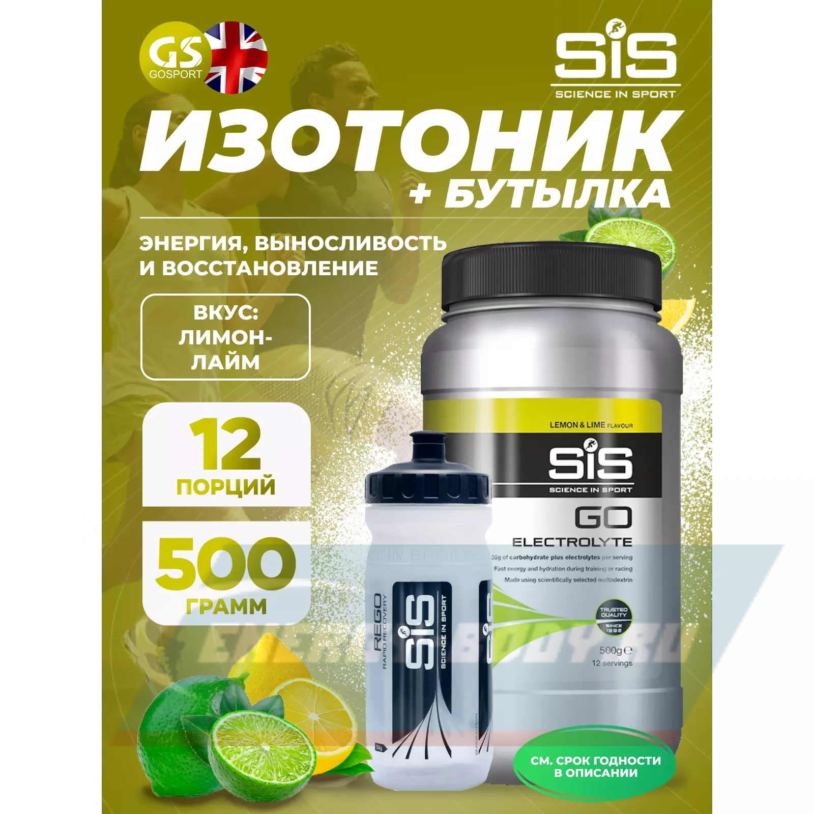 SCIENCE IN SPORT (SiS) GO Electrolyte + Бутылочка прозрачная Лимон-лайм №1 — Выносливость и восполнение электролитов