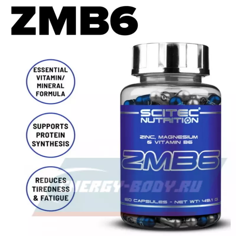 ZMB 6 от Scitec Nutrition комбинация необходимых витаминов и минералов, обеспечивающая потребность организма в цинке, магнии и витамине В6.
