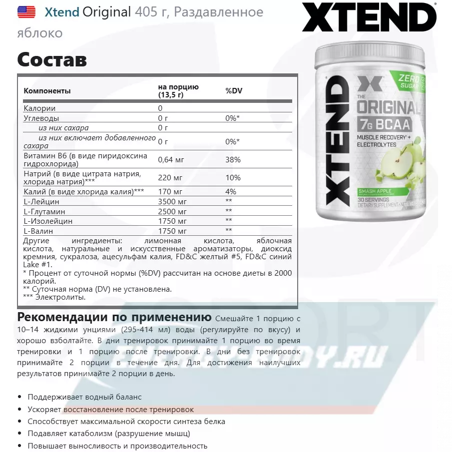 Комплекс Xtend SCIVATION является одним из лучших восстановительных комплексов ВСАА. Данный продукт это комплекс ВСАА аминокислот, которые обладают ярко выраженными анаболическими способностями. В состав входят такие эффективные составляющие как ВСАА, Глютамин, пиридоксин, цитруллин.