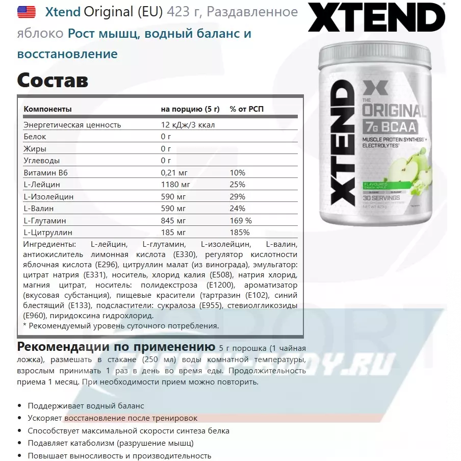 Xtend Original (EU) 398-431 г, Яблочный — Рост мышц, водный баланс и восстановление