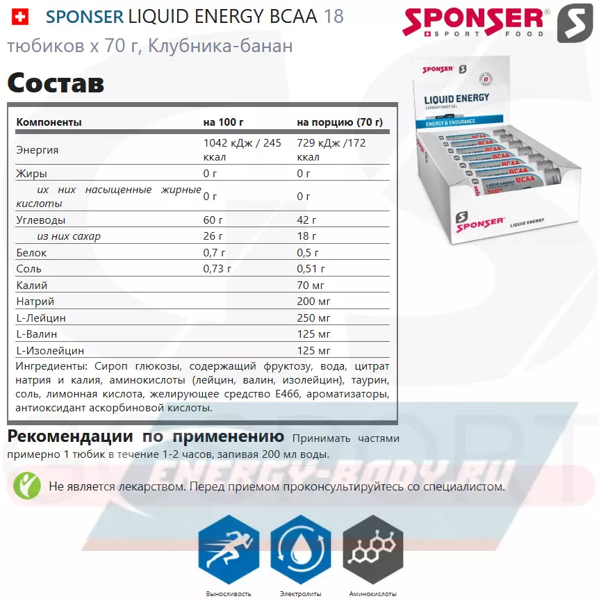 Состав SPONSER LIQUID ENERGY BCAA