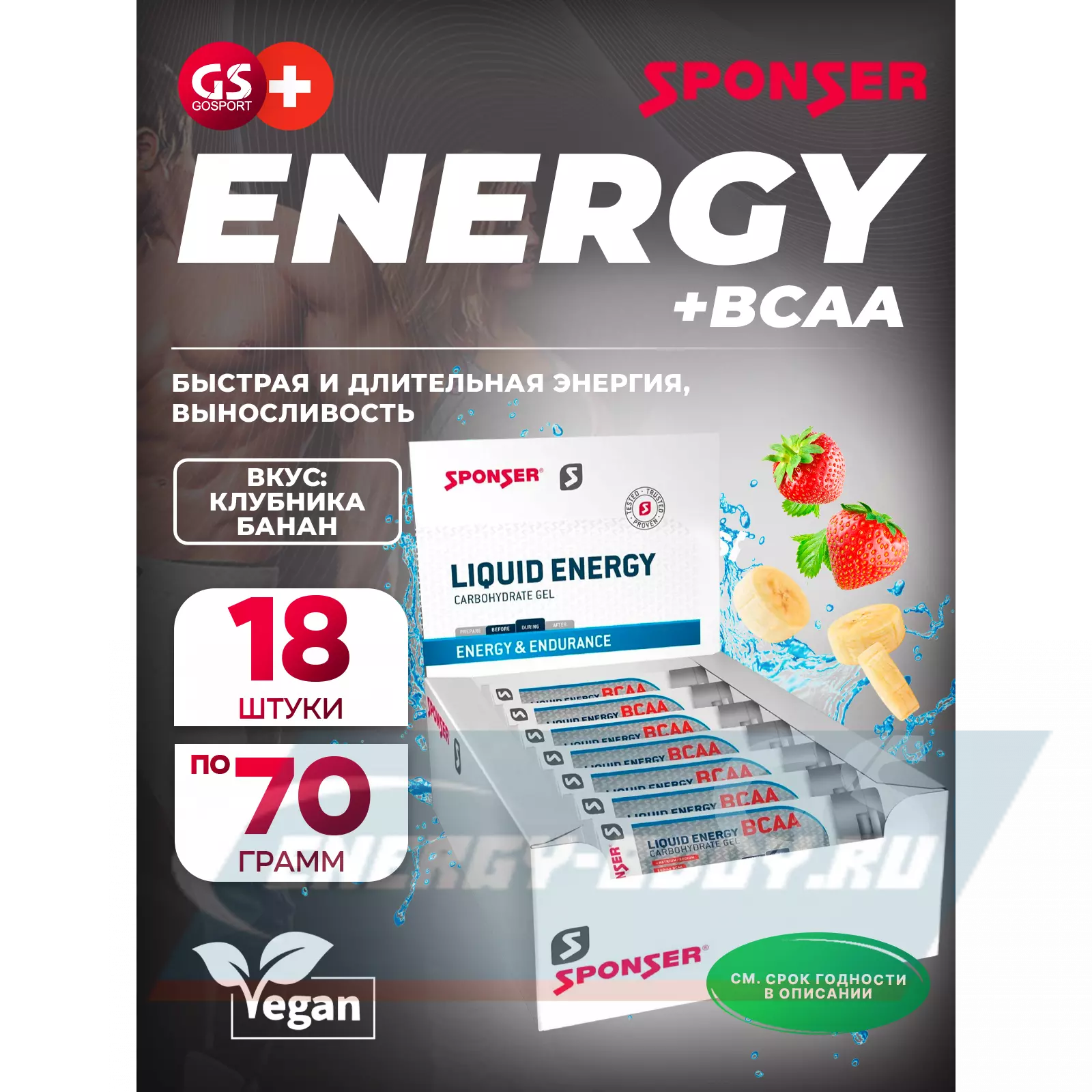LIQUID ENERGY BCAA 18 тюбиков x 70 г, Клубника-банан