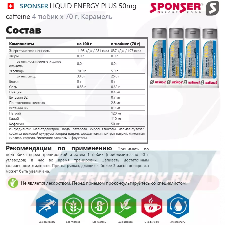 Энергетический гель SPONSER LIQUID ENERGY PLUS 50mg caffeine 4 тюбик x 70 г, Карамель Энергетический гель SPONSER LIQUID ENERGY PLUS 50mg caffeine 4 тюбик x 70 г, Карамель Энергетический гель SPONSER LIQUID ENERGY PLUS 50mg caffeine 4 тюбик x 70 г, Карамель Энергетический гель SPONSER LIQUID ENERGY PLUS 50mg caffeine 4 тюбик x 70 г, Карамель Энергетический гель SPONSER LIQUID ENERGY PLUS 50mg caffeine 4 тюбик x 70 г, Карамель