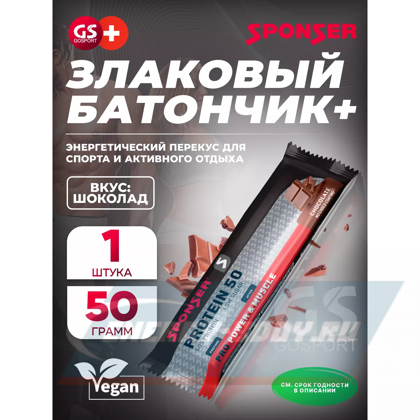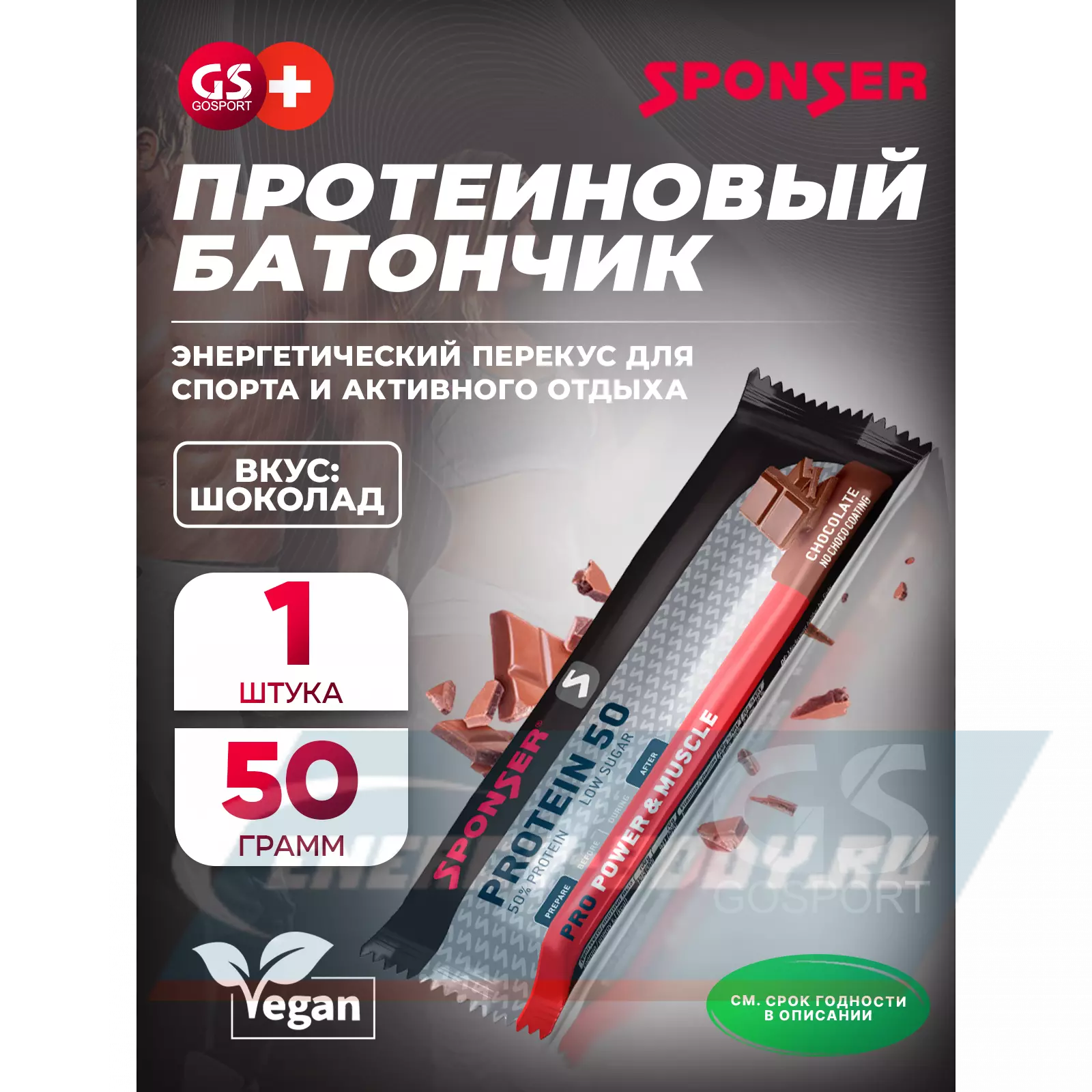 SPONSER PRO PROTEIN BAR 50 50 г, Шоколад — Энергетический перекус для спорта и активного отдыха
