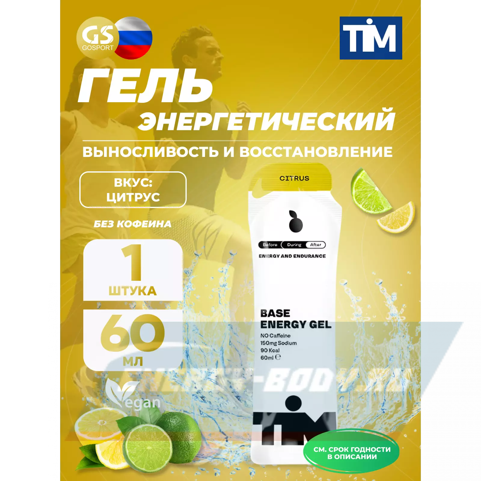 Энергетический гель на углеводной основе с натуральным ароматизатором и натуральным подсластителем, предназначенный для устойчивой мышечной активности.