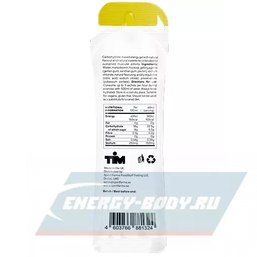 Энергетический гель на углеводной основе с натуральным ароматизатором и натуральным подсластителем, предназначенный для устойчивой мышечной активности.