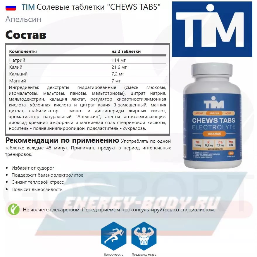 - Новая, удобная форма для поддержания и восполнения электролитного баланса - жевательные таблетки TiM