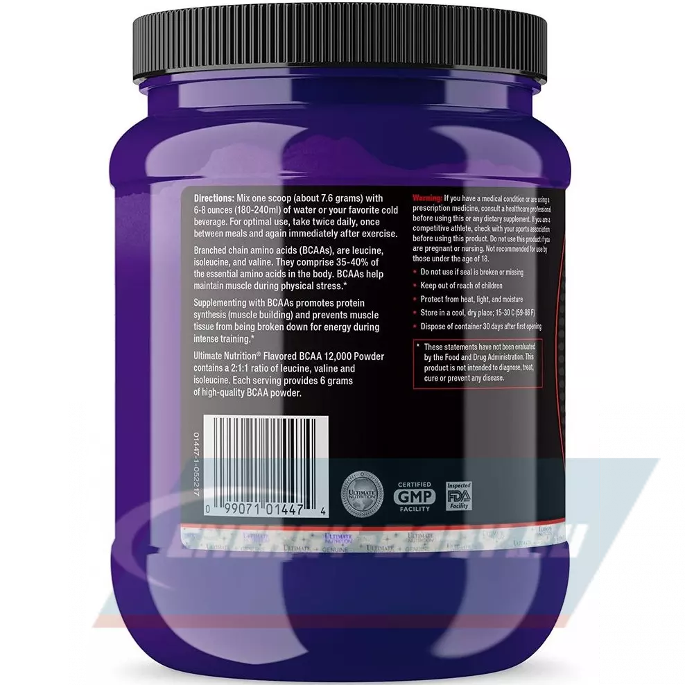 Незаменимые аминокислоты BCAA, представлены тремя аминокислотами: лейцином, валином и изолейцином, которые играют исключительную роль в интенсивности протекания восстановительных процессов в мышечных тканях. Именно аминокислоты BCAA способны поддерживать целостность мышечных тканей в период силовых тренировок. BCAA выступают в качестве защитников мышечных тканей от разрушительного воздействия катаболических процессов. BCAA – это незаменимые аминокислоты, что подразумевает абсолютную неспособность организма самостоятельно их синтезировать. Поэтому, единственными источниками данных аминокислот являются продукты питания, богатые аминокислотами BCAA и специально разработанные аминокислотные добавки, основным компонентом которых выступают BCAA, такие как порошковая добавка BCAA 12000 Powder от компании Ultimate Nutrition. Преимуществом другого варианта продукта 100% Crystalline BCAA 12000 Powder является отсутствие наполнителей, а также ароматизаторов.