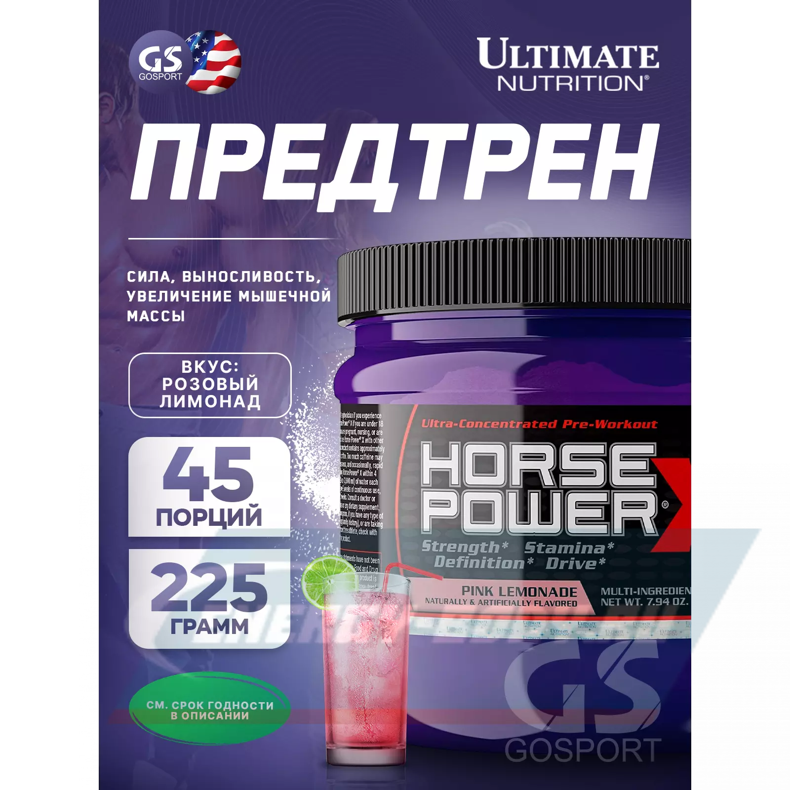 Ultimate Nutrition HORSE POWER X 225 г, Розовый лимонад — Сила и выносливость
