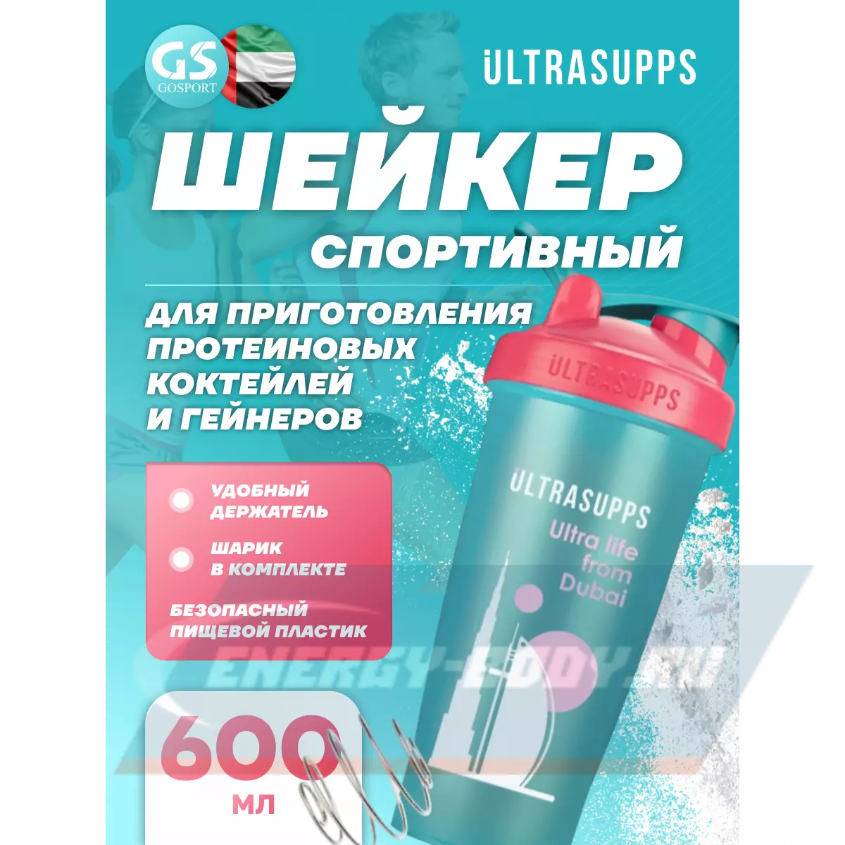 UltraSupps Шейкер 600 мл, Бирюзовый — Для приготовления протеиновых коктейлей и гейнеров