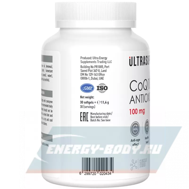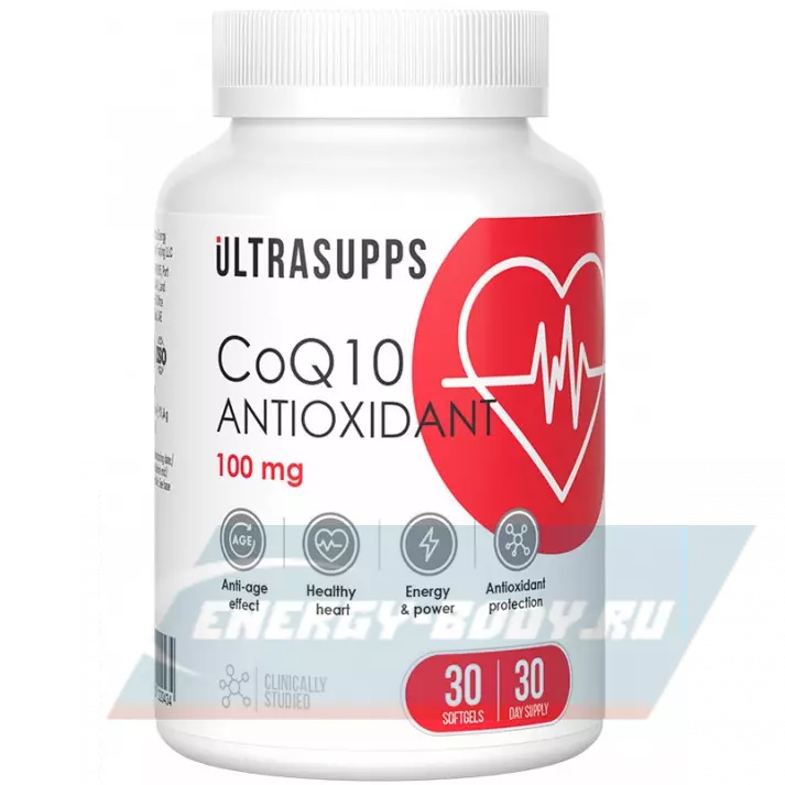 UltraSupps Coenzyme Q10 100 mg 30 капсул — для энергии и сердца, антиоксидант