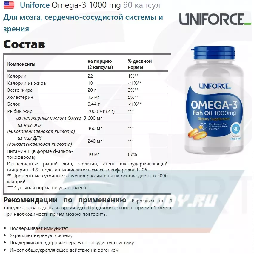Добавка от Uniforce доказала свою эффективность на мировом рынке. В составе каждой порции 360мг EPA и 240мг DHA!