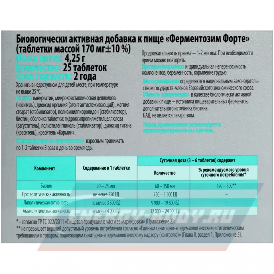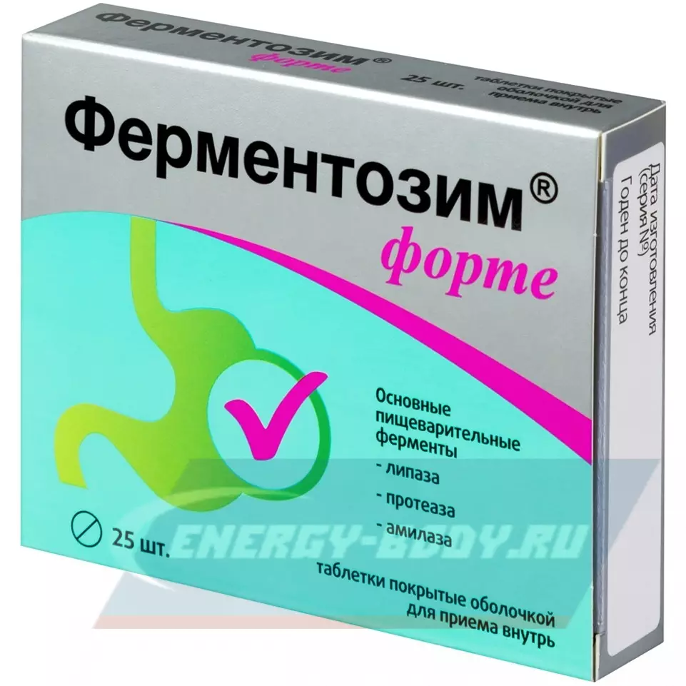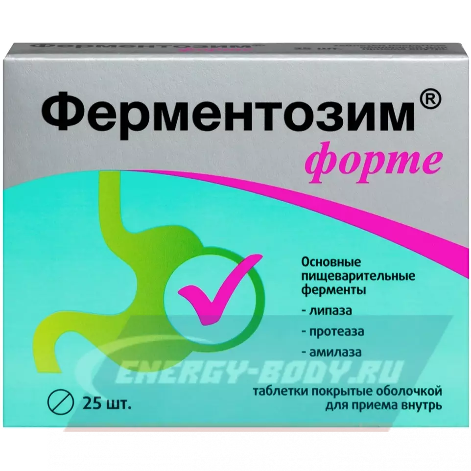 Ферментозим Форте содержит панкреатин и биотин, которые способствуют нормализации пищеварения. Панкреатин компенсирует недостаток ферментов, необходимых для комфортного пищеварения, а биотин дополнительно помогает расщеплению и обмену глюкозы. Входящие в состав панкреатические ферменты облегчают расщепление углеводов, жиров и белков до более мелких фрагментов, которые способны всасываться в желудочно-кишечном тракте.