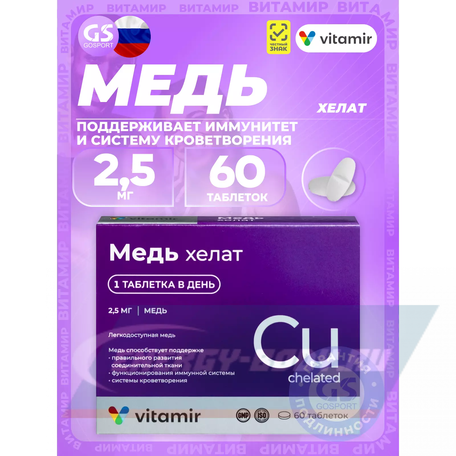 Состав ВИТАМИР Медь хелат 2,5 мг