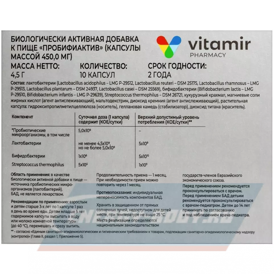 ВИТАМИР Пробифи-Актив 10 веган капсул — Поддержка нормальной микрофлоры кишечника