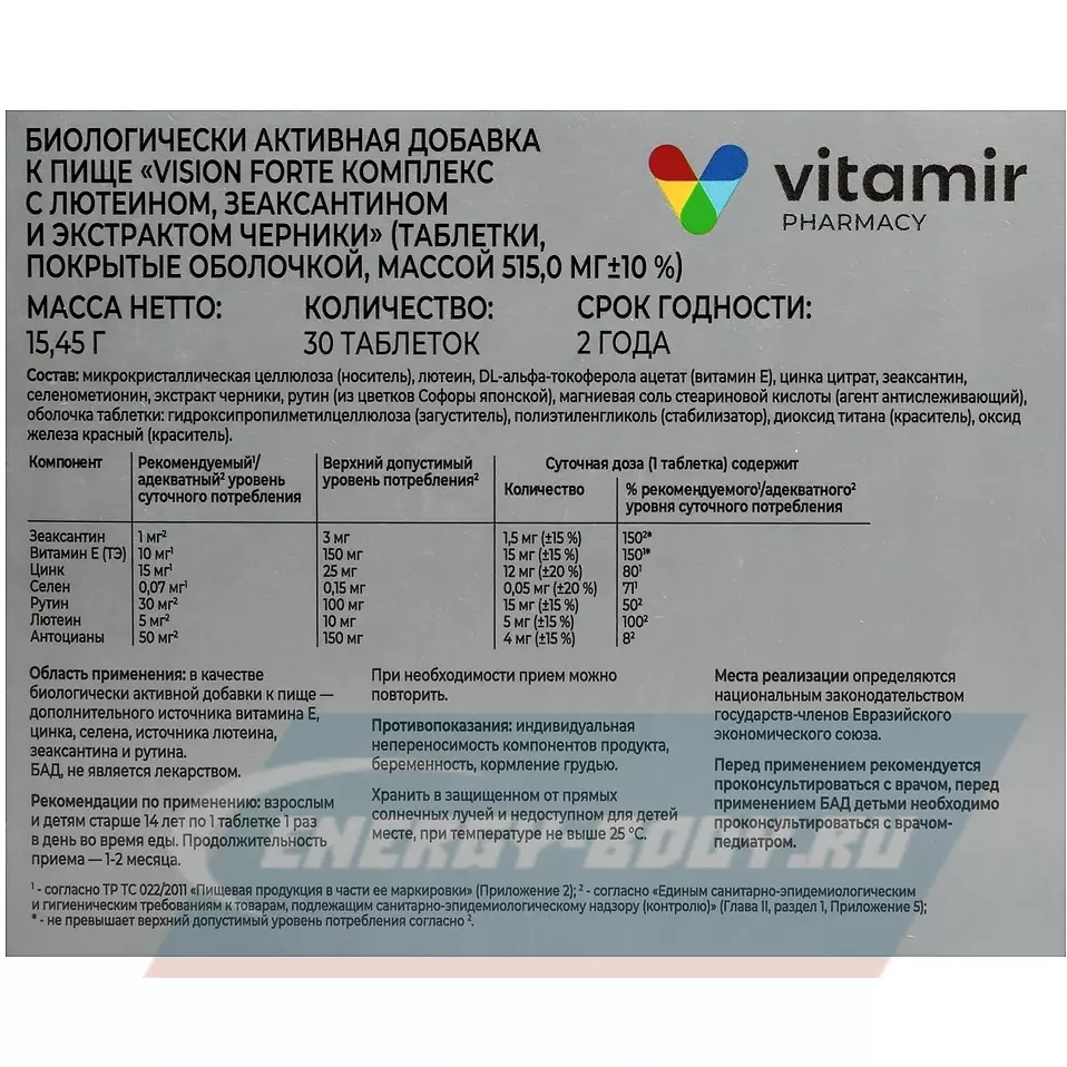 Vision Forte 30 таблеток