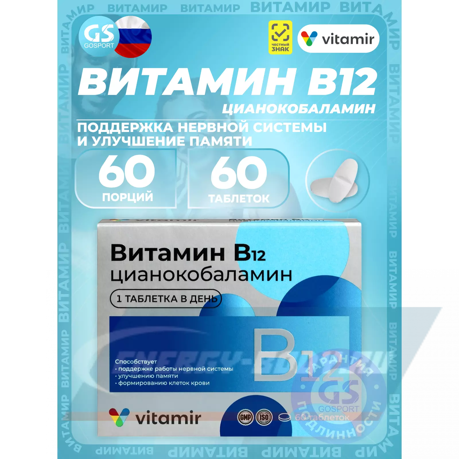 ВИТАМИР Витамин B12 60 таблеток — Поддержка нервной системы и улучшение памяти
