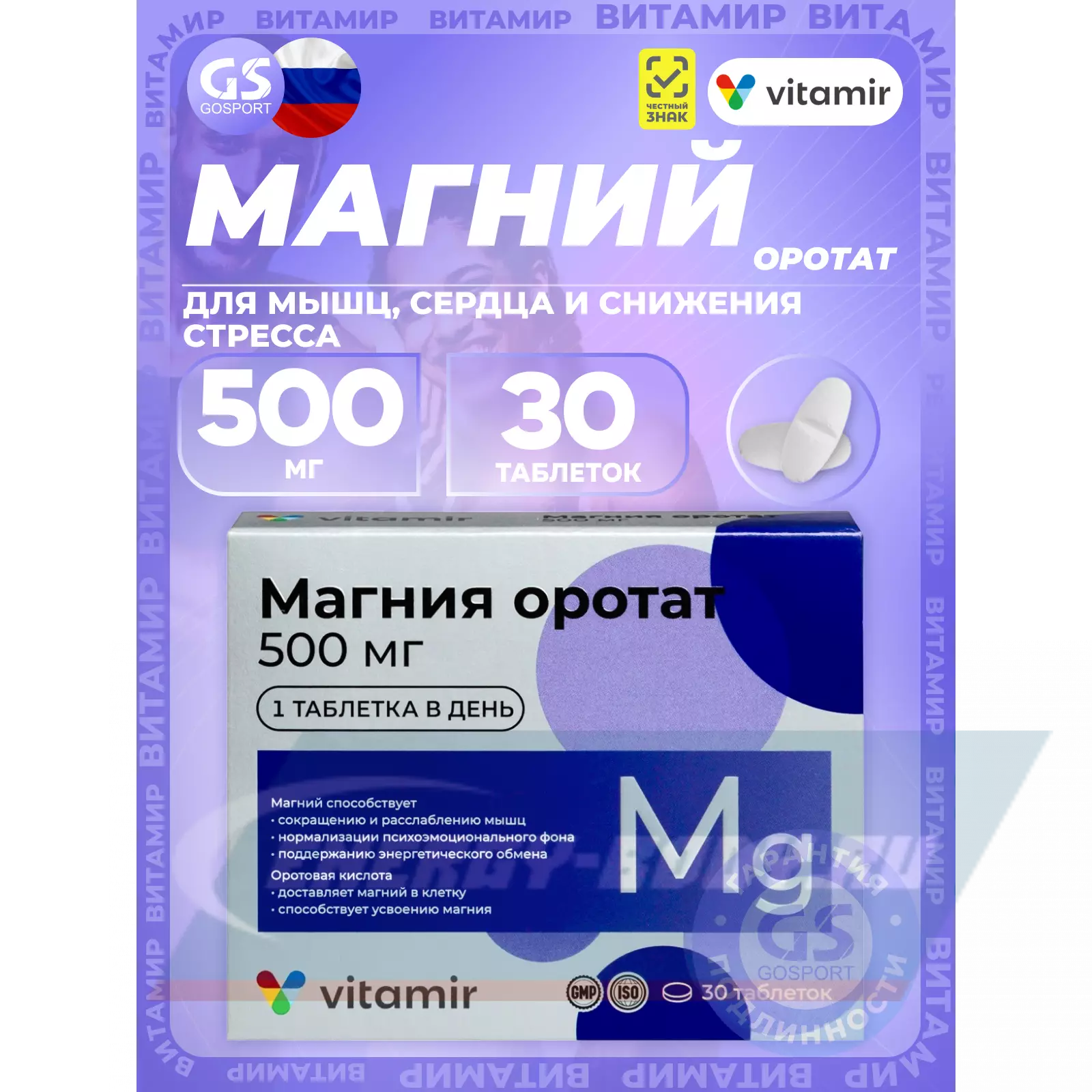 ВИТАМИР Магния оротат 500 мг 30 таблеток — Для мышц, сердца и снижения стресса
