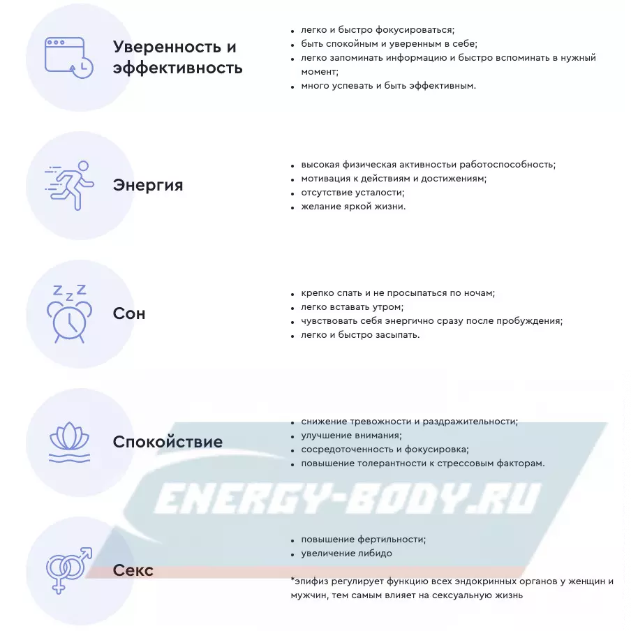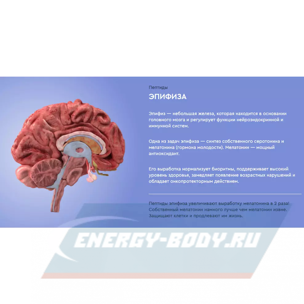 - Работу всей нейроэндокринной системы координирует эпифиз. Одна из важнейших задач эпифиза - синтез собственного мелатонина. Его своевременная выработка нормализует биоритмы, поддерживает высокий уровень здоровья и замедляет появление возрастных нарушений.
