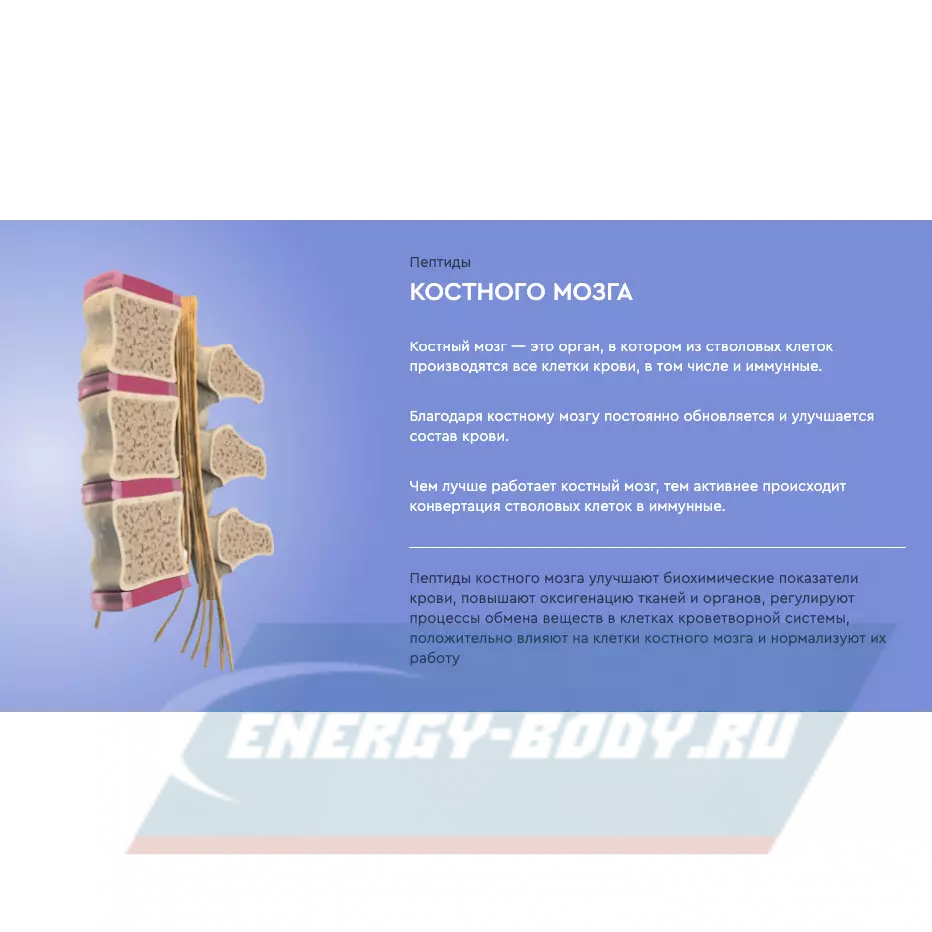 - Главный компонент иммунной системы – Т-лимфоциты. Благодаря пептидам костного мозга увеличивается их воспроизводство и улучшается вся кроветворная система организма.