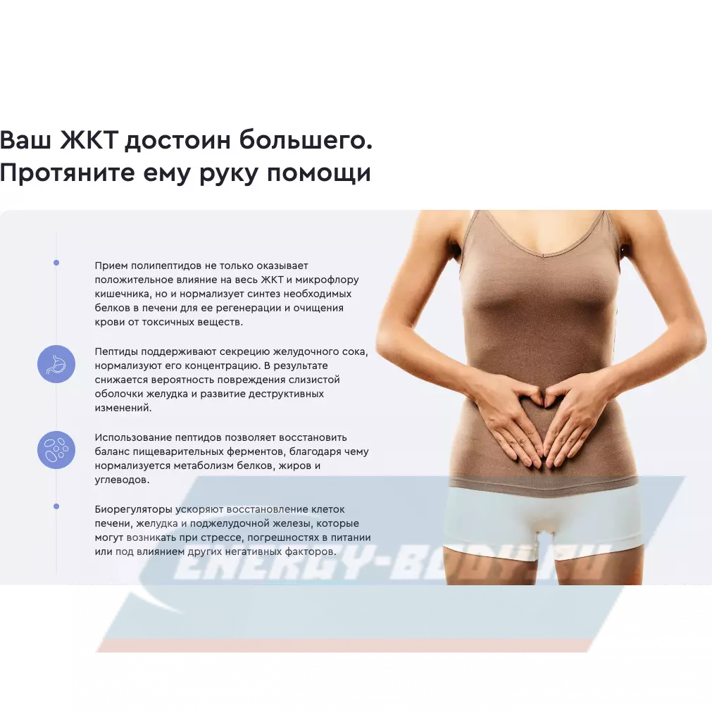Прием полипептидов не только оказывает положительное влияние на весь ЖКТ и микрофлору кишечника, но и нормализует синтез необходимых белков в печени для ее регенерации и очищения крови от токсичных веществ.